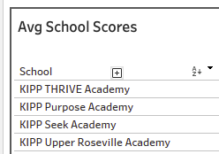 - Avg. School Scores: The weighted (80% ETR and 20% Self and Others) score average per school. Use the plus sign by the school name to drill down to coach/observer.