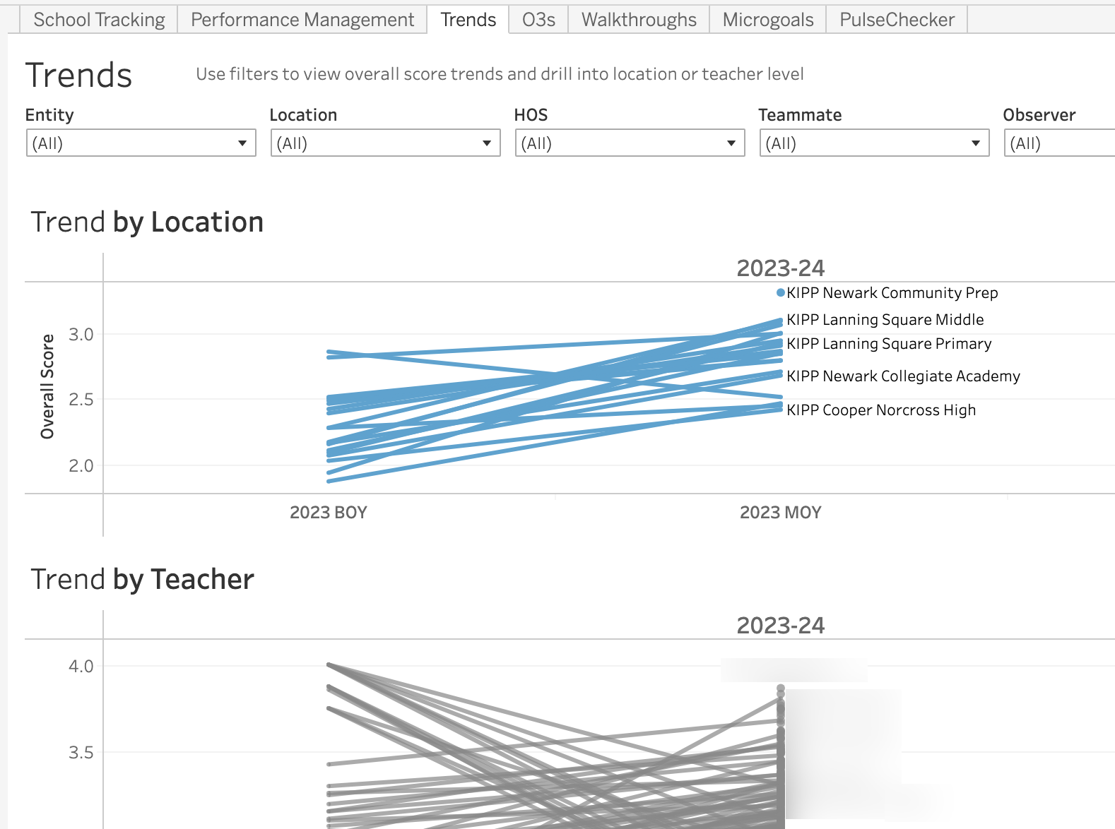 - PM Term: Filter by BOY/MOY/EOY performance management round or by week for Walkthroughs and O3s