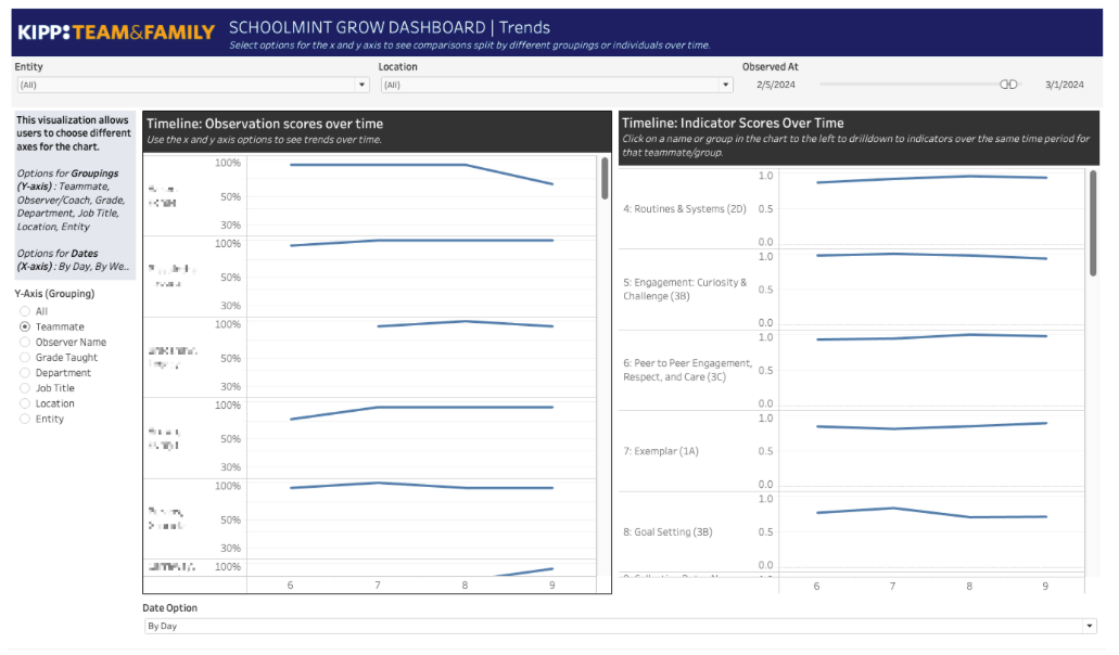 - Walkthrough Trends tab: A new experience leveraging time series data in SchoolMint Grow. Change the axes to compare different groups over different periods of time.