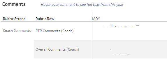 - Scores and comments entered in the Coaching Tools: Coach ETR and Reflection and Coaching Tools: Teacher Self Reflection.