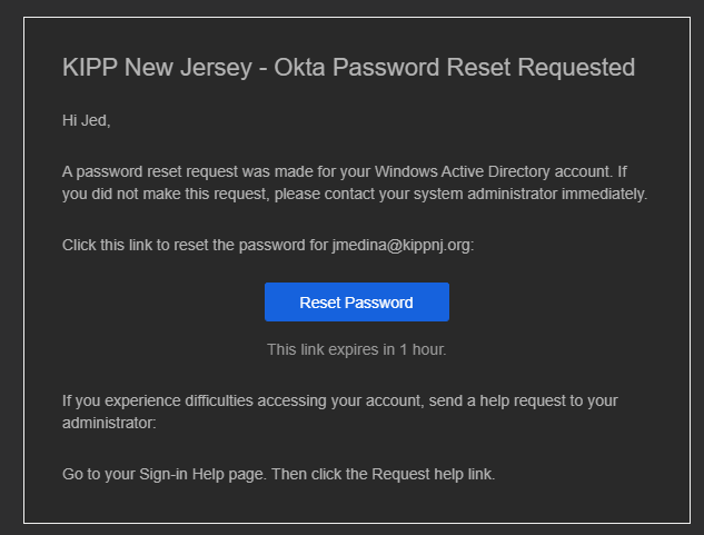 If you forgot your password, you can reset it without having to submit a Technology Ticket as long as you followed and completed your onboarding instructions on setting up Self-Service Password Reset.