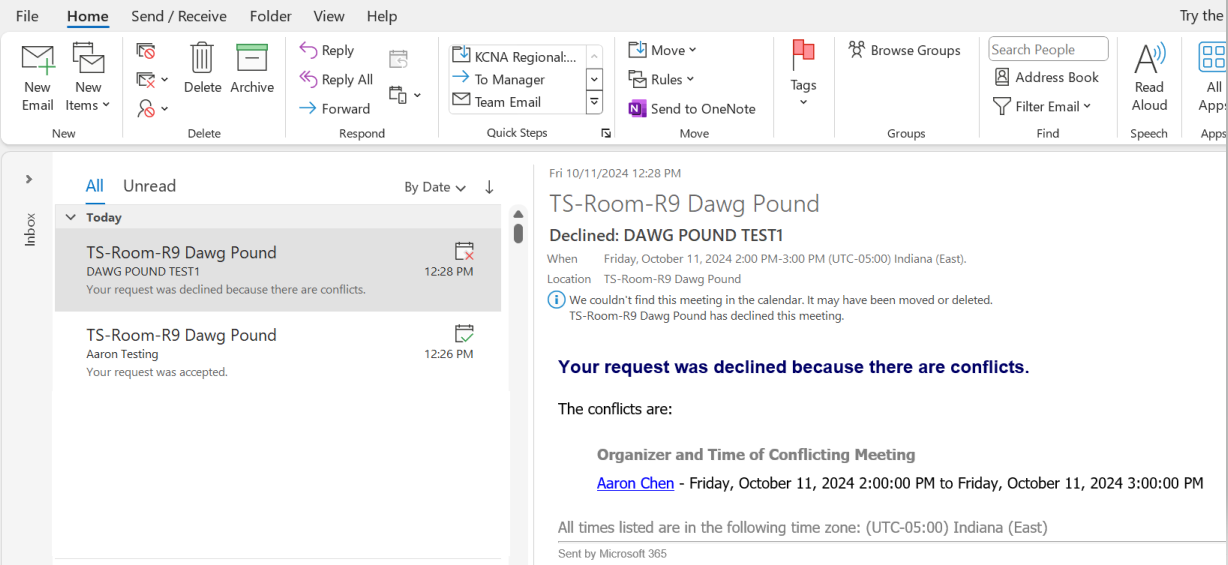 This article outlines how to use the Room Finder feature in Outlook to book a Room 9 conference room for a meeting.