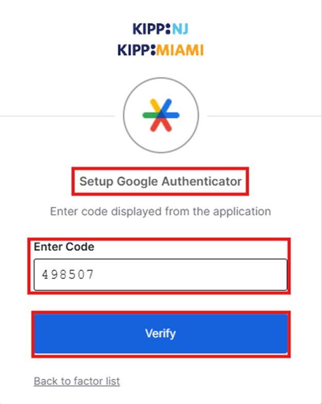 Prompt 4: Retrieve your verification code from your device, insert it here, and click verify.