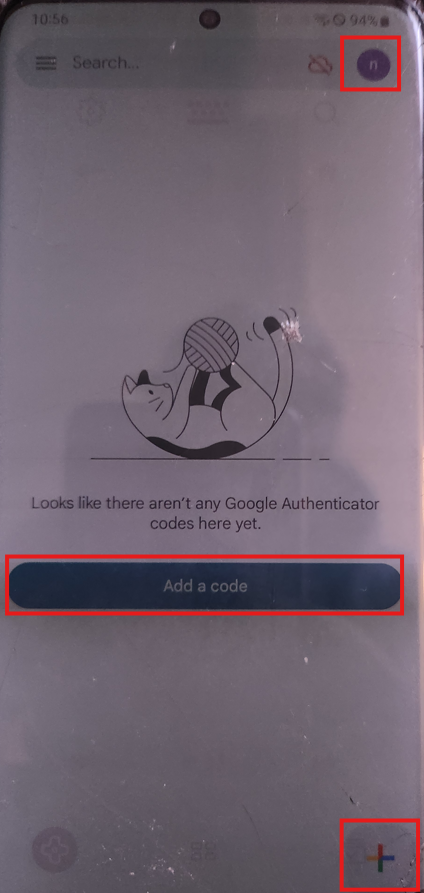 You can add authentication codes after you've chosen an account to use.