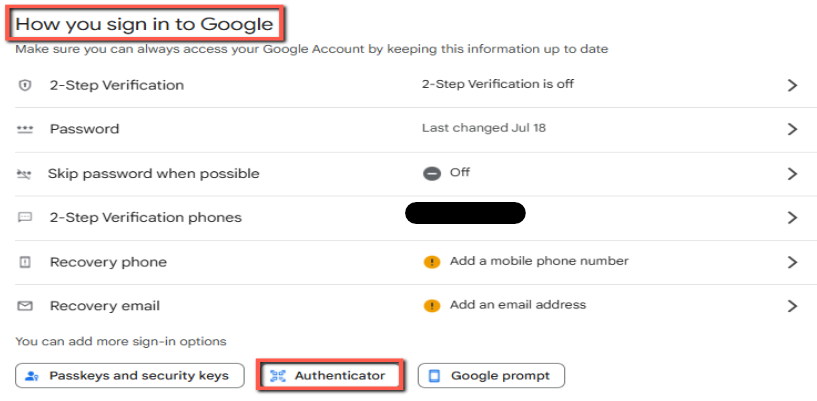 Click "Authenticator" under the “How you sign in to Google” section.