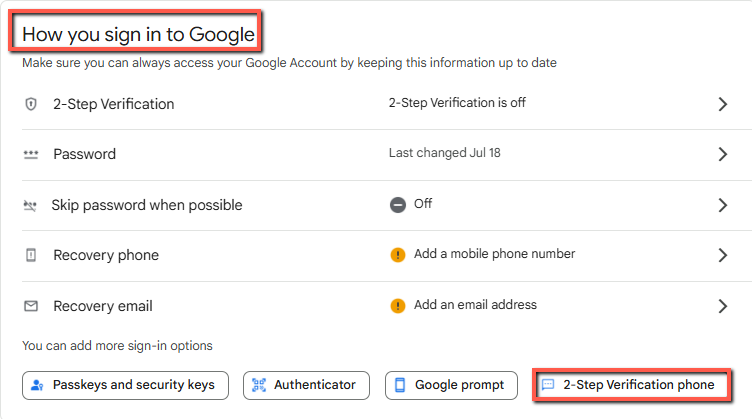 Click "2-Step Verification phone" under the “How you sign in to Google” section.