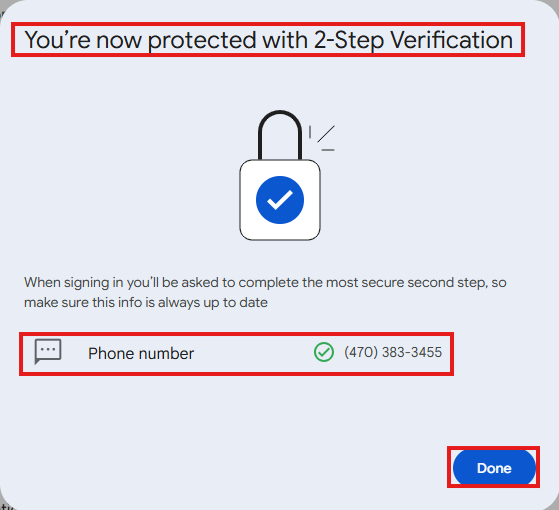 You have successfully set up the “2-Step Verification Phones” enrollment method!!! The next time you log in, you will be prompted to use MFA!!!