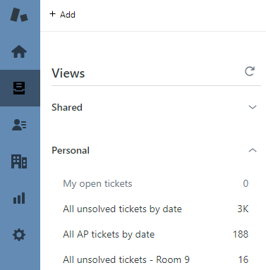 - Personal Views: These are views that you can create and edit yourself. Use Personal Views to ensure that you are looking at the most relevant tickets for your work.